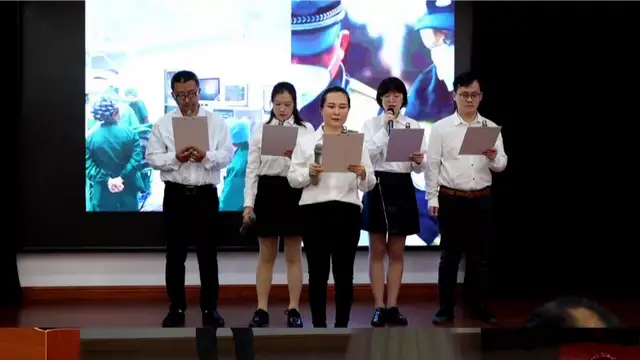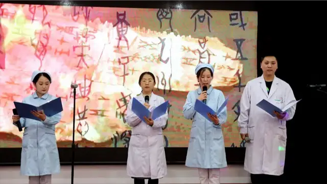 诗朗诵中的《庆祝中国共产党成立100周年大会献词节选》、《中华颂》、《读中国》等表达了医务人员对建党百年的崇敬和对祖国深情的热爱;门诊部的表演将舞蹈《万疆》演绎得生动形象、柔美大气。
