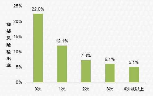 不同运动频率下的抑郁风险检出率。 资料来源:《中国国民心理健康发展报告(2021-2022)》