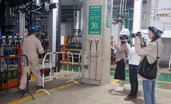 采风团一行记录电力工人工作瞬间。贝媛媛摄