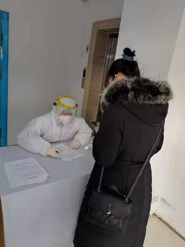 ▲流调人员正在认真有序为患者进行流行病学调查登记工作,严格把关