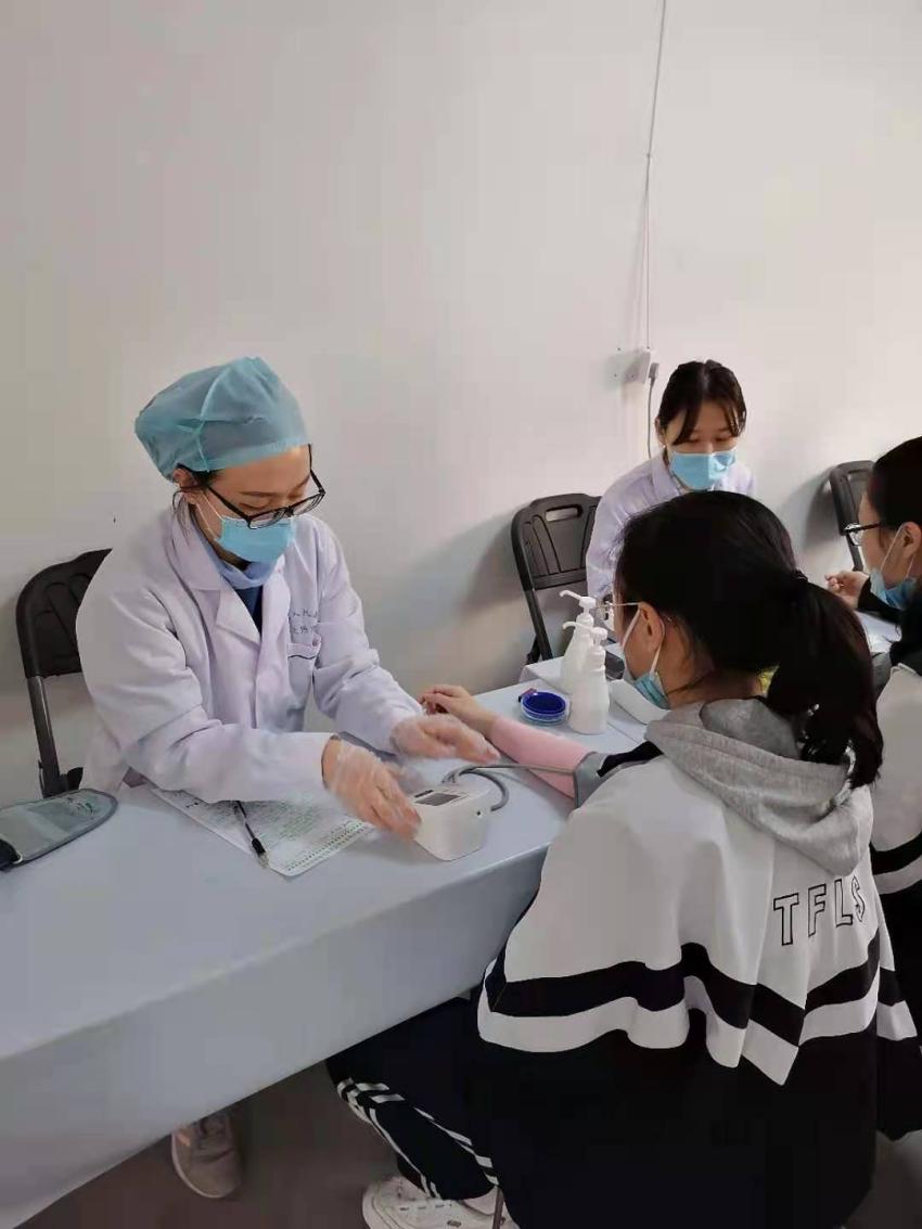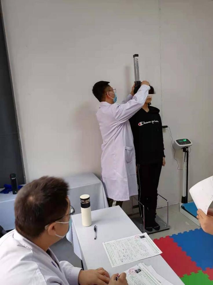 体检现场,同学们在工作人员的组织下依次进行体检。体检小组医务人员分别对同学们的身高、体重、视力、听力、血常规、血压、内科、外科、五官、胸透等多项内容进行了严格检查。