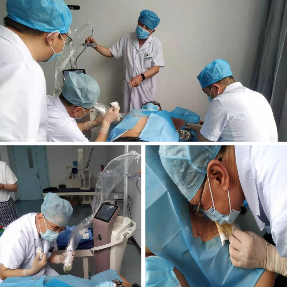 雷晋教授事无巨细、精细操作、现场教学,治疗结束必躬必亲检查治疗效果